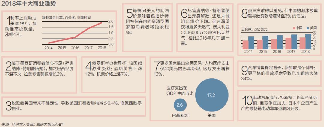 大部分新兴市场的金融机构都增强了抗风险能力。对于中国的大型银行和保险公司来说,2018年的紧缩局面会带来一些风险,贷款增长率也会下跌并徘徊在3%左右。不过中国手头有足够的资源来应对此类局面。各家银行继续在“金融科技”上重金投入,花巨资探索区块链(一种数字记账本)的潜在用途。包括巴莱克和汇丰在内的一批银行已与瑞银集团联手,计划利用该技术共同开发一款新的数字货币,预计将于2018年底推出。