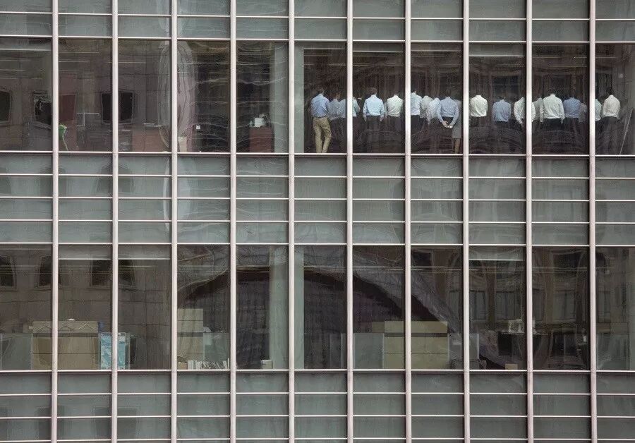 (2008年9月11日,雷曼兄弟公司在伦敦的公司召集员工开会。同年9月15日,雷曼在纽约法院申请破产保护。图/视觉中国)